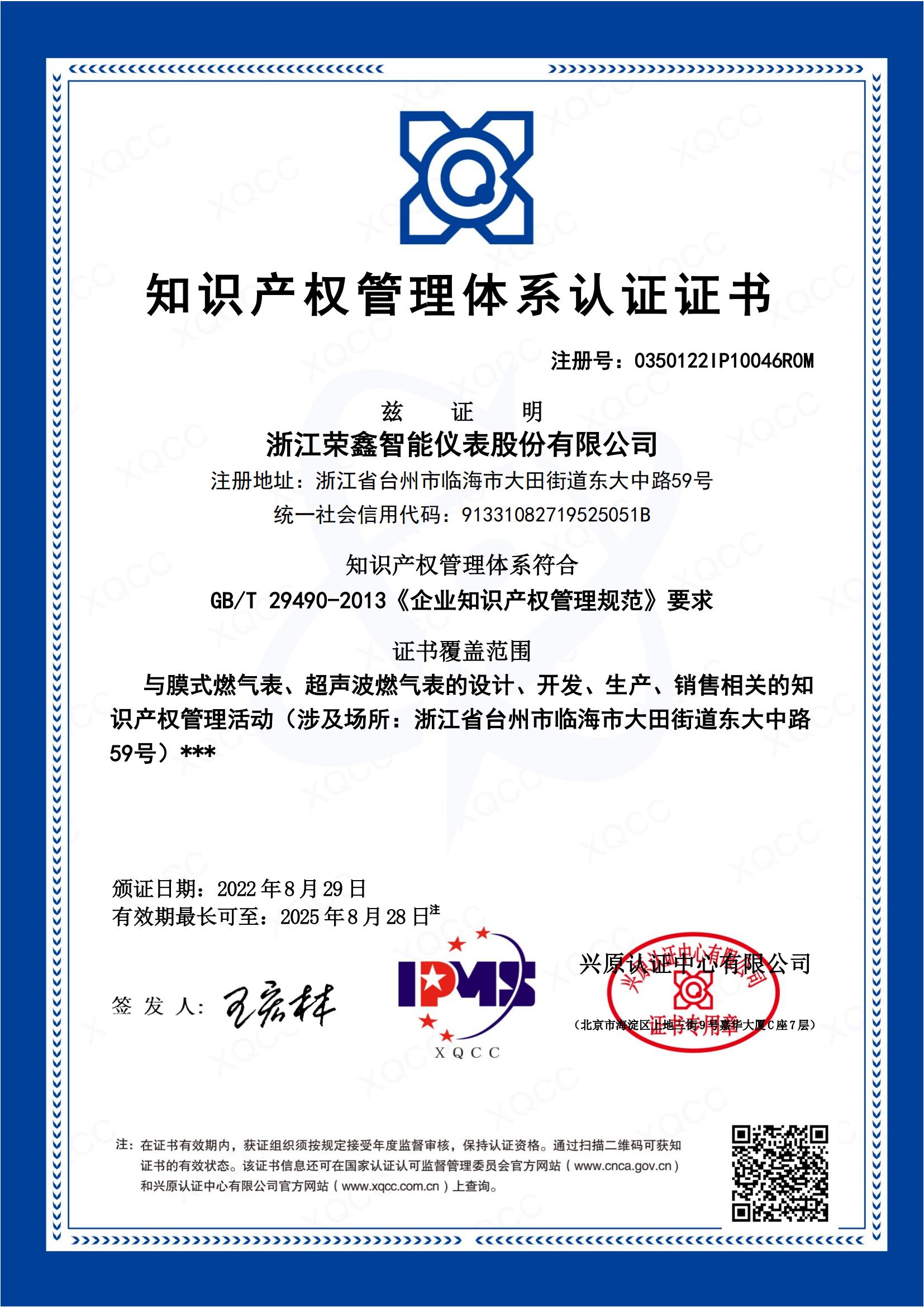 知識產(chǎn)權管理體系證書