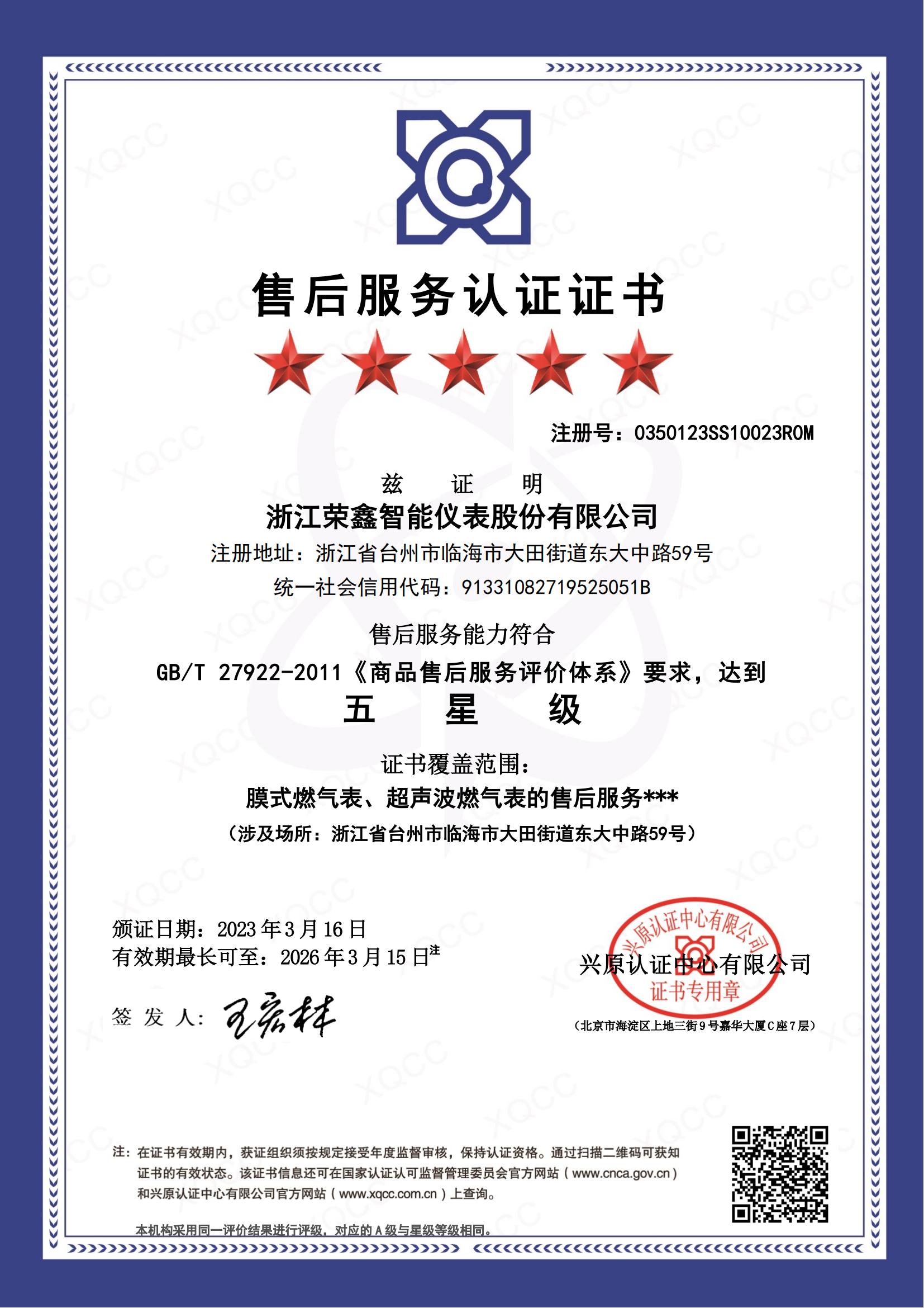 質(zhì)量管理體系認證證書